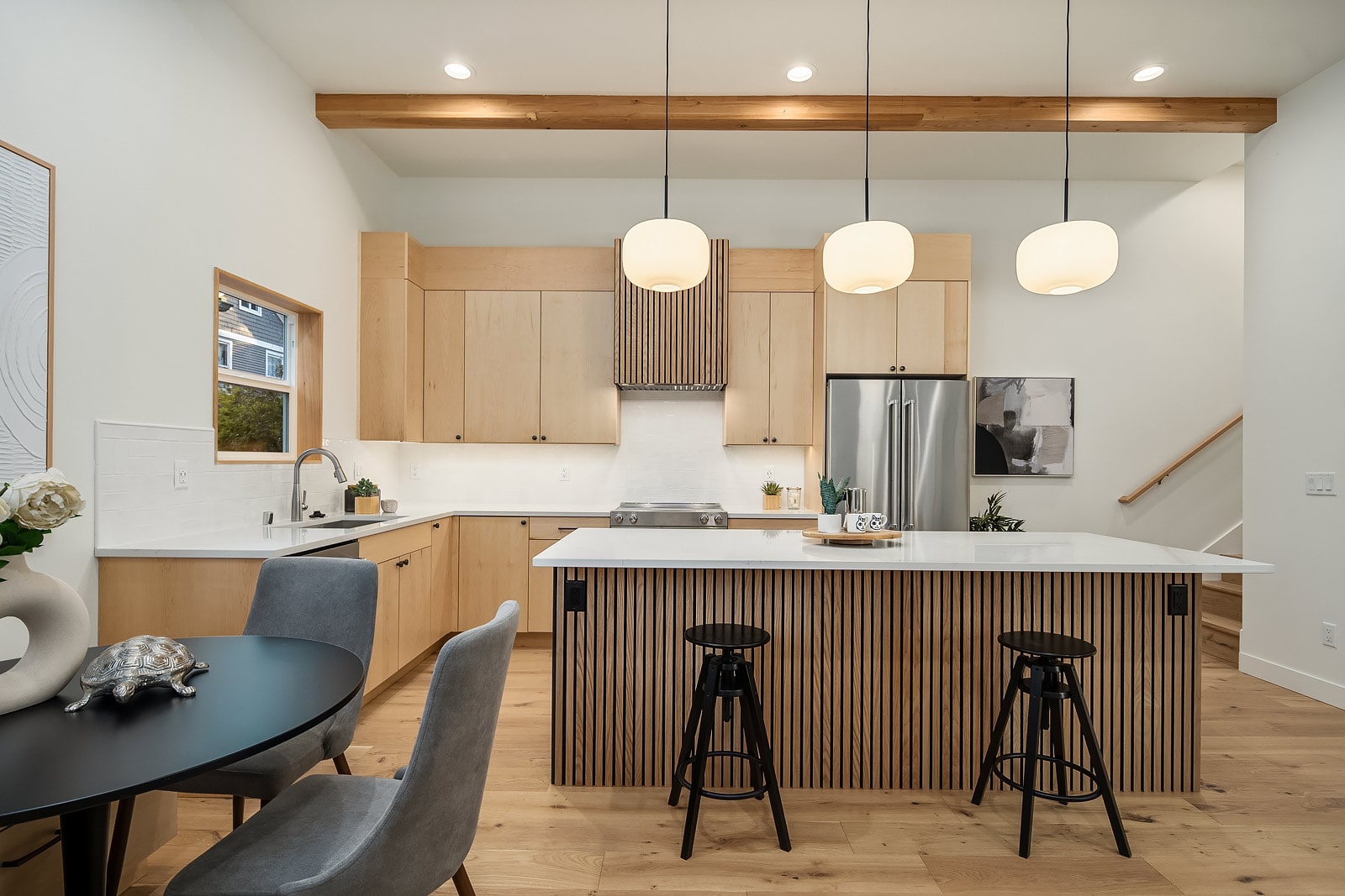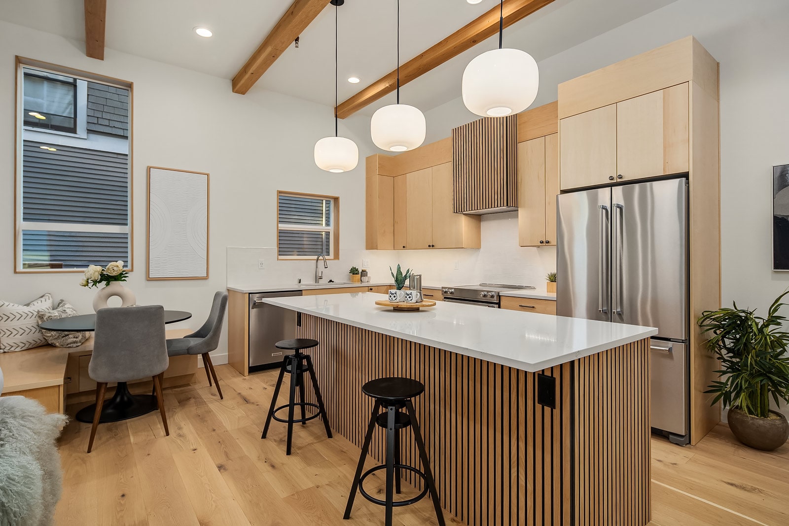 The Denmark Collection, built by Confluence Development, features a Northwest Contemporary and modern design. These homes are notable for their spacious, open-concept floor plans, with some units offering up to 2,000 square feet of living space and four oversized bedrooms.