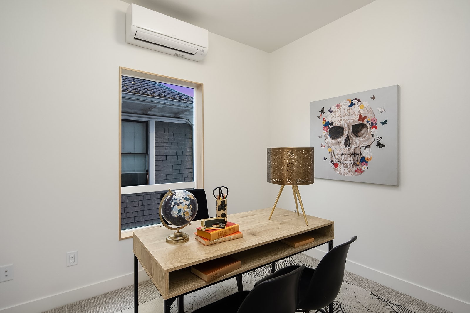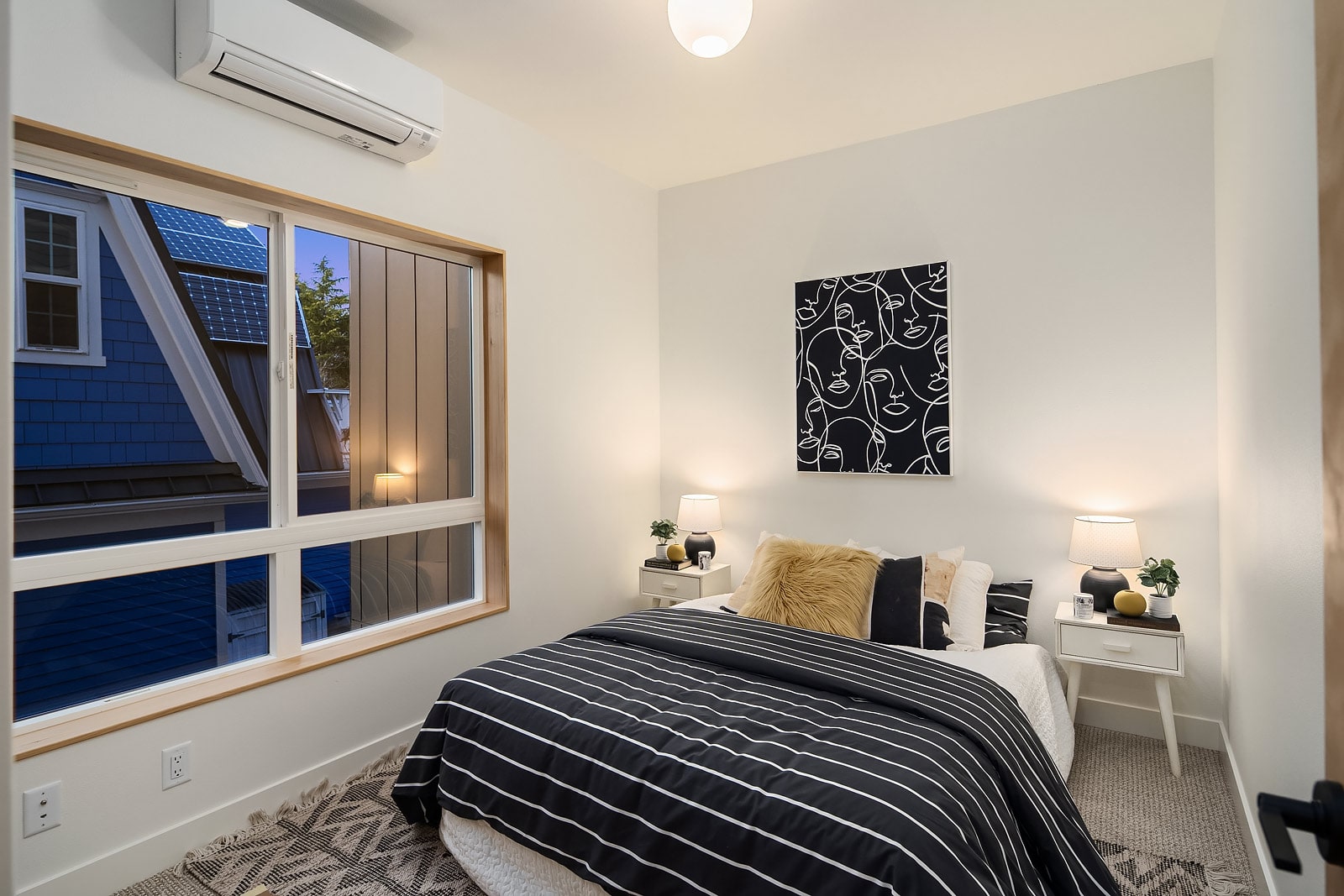 The property provides residents with a private, landscaped patio and a rooftop deck that offers cityscape views. Located in a convenient area, the homes boast a 98 Walk Score, with easy access to nearby services.